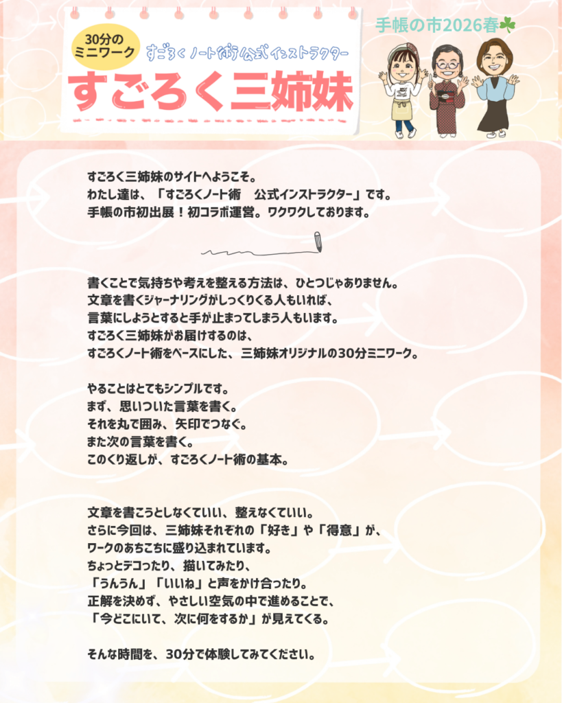 すごろく三姉妹がお届けするのは、すごろくノート術をベースにした、三姉妹オリジナルの30分ミニワーク。