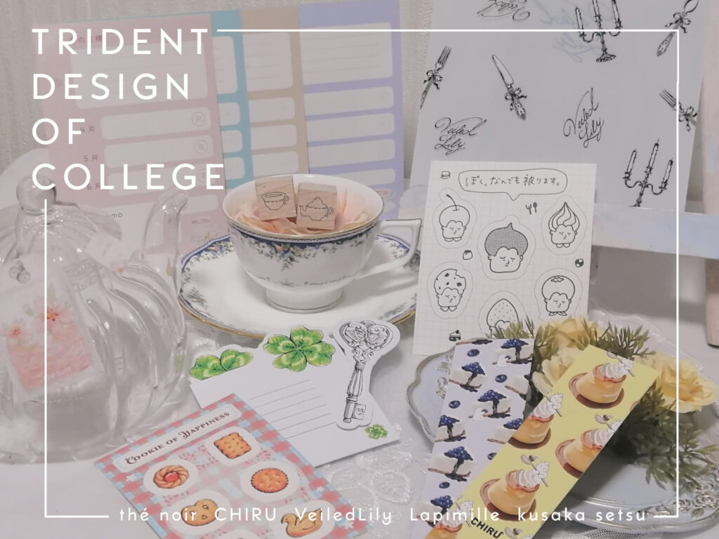 トライデントデザイン専門学校 名古屋にあるトライデントデザイン専門学校でデザインを学ぶ学生5名による初出店です! 「ティータイム」をコンセプトにしおり、ステッカー、メモ用紙などを販売します。 はじめての販売イベントなのでドキドキです。 温かい心でご覧いただけるとうれしいです**