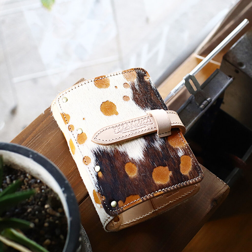 人気商品は、ハラコ革を使用したシステム手帳です。独特の毛並みと存在感があり、毎回完売することも多い定番アイテムとなっています。