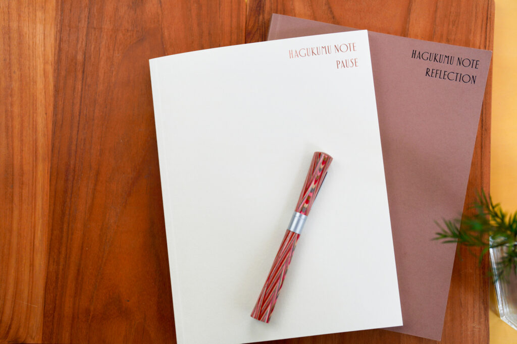 17年間のコーチング経験から生まれた問いとワークシート付きのジャーナリングノート「HAGUKUMU NOTE」シリーズを出展します。
